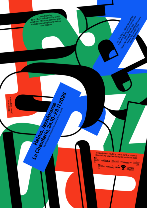 Le travail graphique d’Helmo pour Jazzdor est mis à l’honneur à l’occasion d’une exposition rétrospective à La Chaufferie, la galerie d’exposition de la HEAR. Outre les affiches sérigraphiées de saison, l’exposition présente 24 ans de créations graphiques conçues pour la SMAC. Cet évènement né dans le cadre de l’initiative FORMAT(S) est une coproduction de Central Vapeur, la HEAR et Jazzdor.