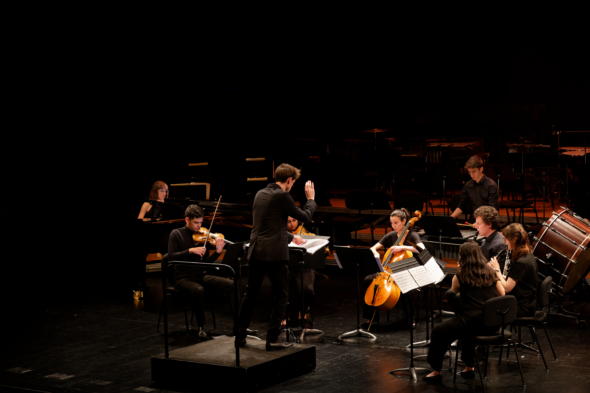 Pour la deuxième session d’orchestre de l’année 2025-2026, les étudiant·es interprètent deux œuvres phares du répertoire de Ligeti sous la direction de Pierre-André Valade.