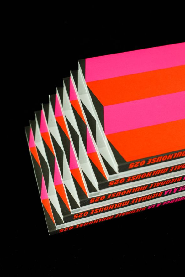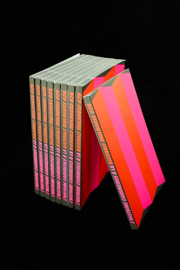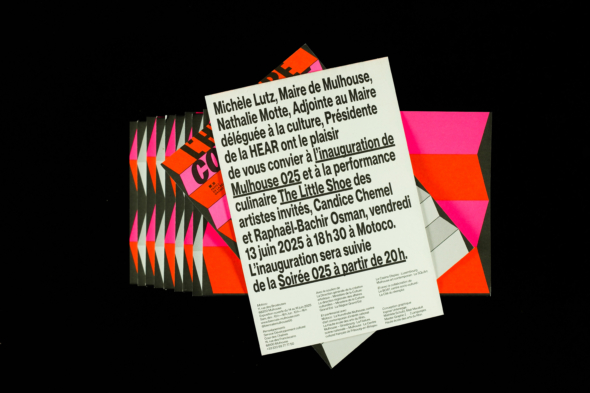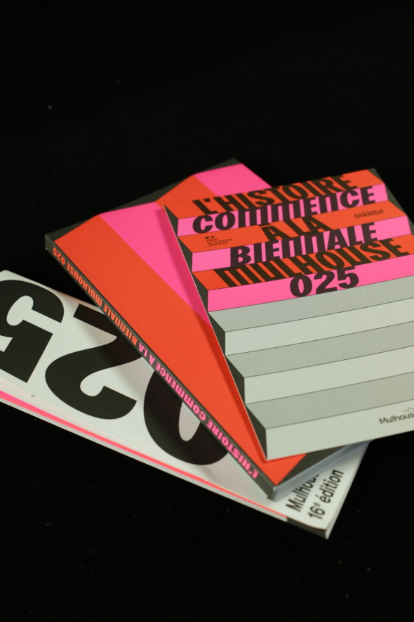 Dans le cadre de la Biennale Mulhouse 025 — Biennale de la jeune création, les étudiant·es Ingmar Unteregge, Mathilde Schultz et Maé Mauduit, inscrit·es en master Graphic [ · · · ] Languages au sein du département Communication graphique, ont été invité·es à concevoir l’identité visuelle des supports imprimés et numériques de l’événement.