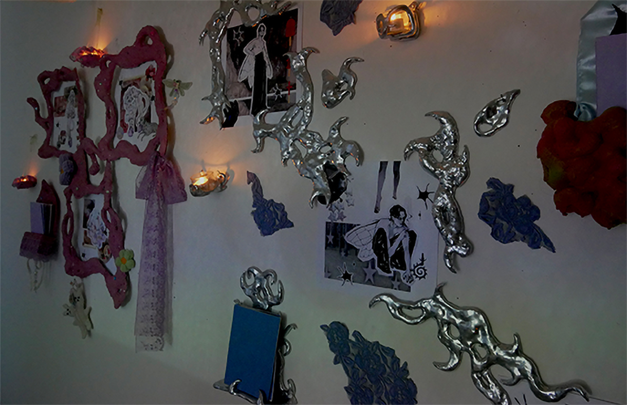 FR Je travaille sur la création d’expériences immersives — notamment sous la forme d’installations vidéos — dans des espaces alternatifs queer et hyperféminins. Des narrations poétiques s’y déploient, explorant l’Étrange, les expériences du désir, le féminin et l’intime à travers des archétypes narratifs et des figures mythologiques : sirène, magical girl, héros et méchant, personnages de jeux vidéo… L’authenticité et la viscéralité que l’on peut retrouver dans l’utilisation des esthétiques de l’artificiel y trouve ici écho, superposé aux formes abstraites du vivant.