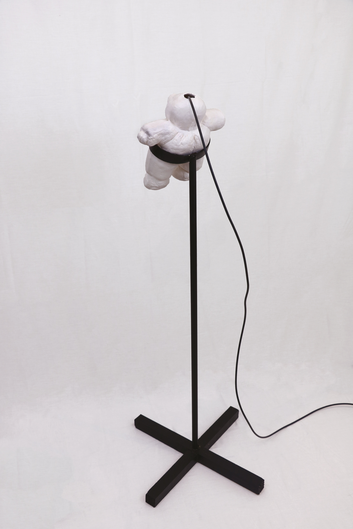 EN Hovering between two extremes, a grey area is an in-between which is paradoxically cut off or linked up. It appears as a generic term designating different types of relations between two states: the interstice, the interval, the middle, the transition, the continuity, the alliance, the meeting, the relationship, the junc¬tion… The wide range of synonyms means it can be contextualised in time, in space and in the emotional and behavioural spheres. My plastic work thus questions the in-between, through its position in relation to two states or as a state in itself. My field of investigation covers mainly the living and thus the organic, wheth¬er in how the body relates to space, in the link between skin and aspect or in the actual or imaginary ability to change appearance, to mutate.