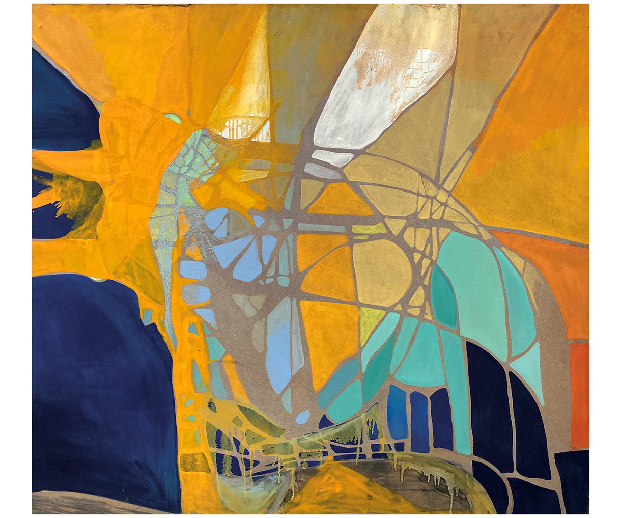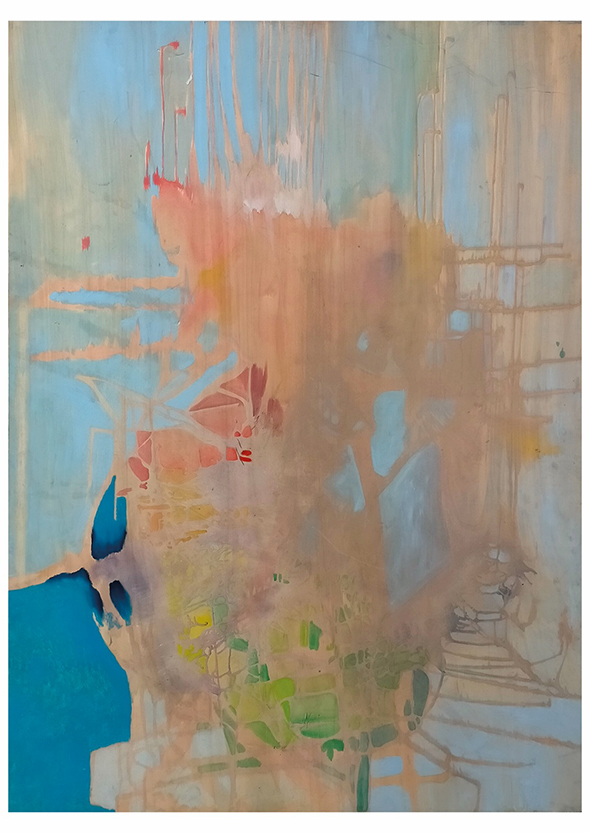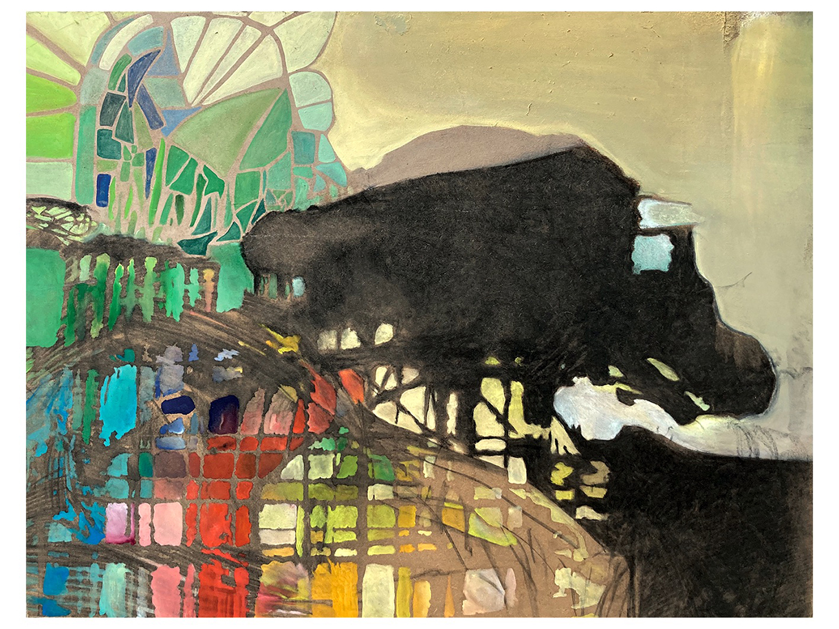 FR Mon travail s’articule autour du sensible, de la contemplation et du lien. J’aime à travailler sur le motif et les supports de mes peintures sont de récupérations : une importance particulière est donnée à l’environnement dans lequel j’évolue. À travers les couleurs, les coulures et les retournements de mes planches à l’atelier, je cherche à faire surgir la lumière de l’opacité, comme si un vitrail demandait à apparaître et à transformer une surface aveugle. Cette recherche méditative se substitue aux modèles vivants.