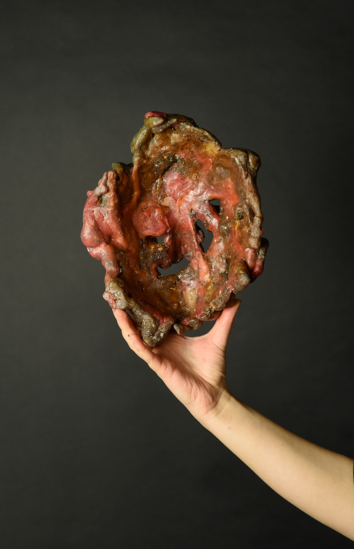 EN My body flows, mutating – warm, liquid imprinting and taking shape. Soon it will crystallize, a block of quartz that will become the eternal vessel for my humanity. Something that carries.