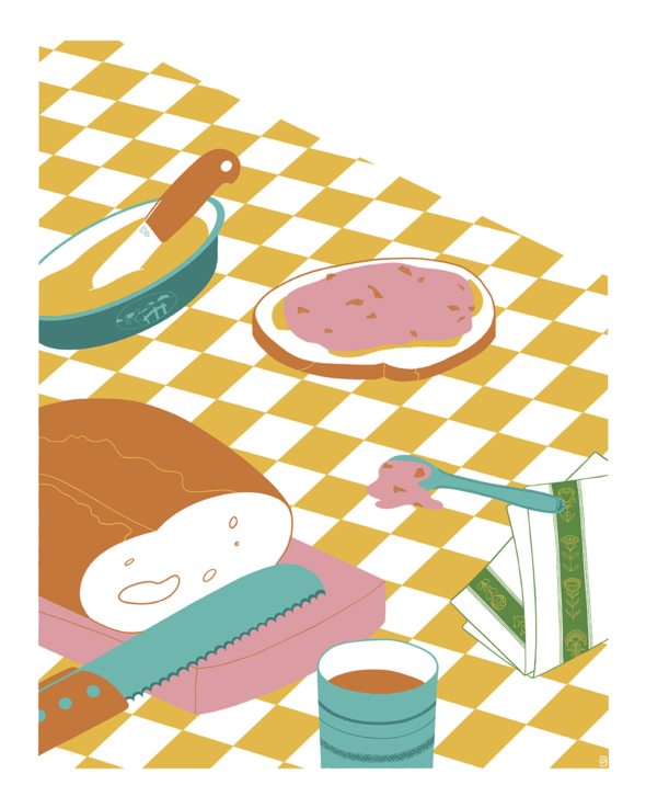 Entre deux tasses de thé, je dessine ce qui m’entoure, trace des formes épurées et colorées pour créer des illustrations à l’atmosphère calme, allant à l’essentiel.