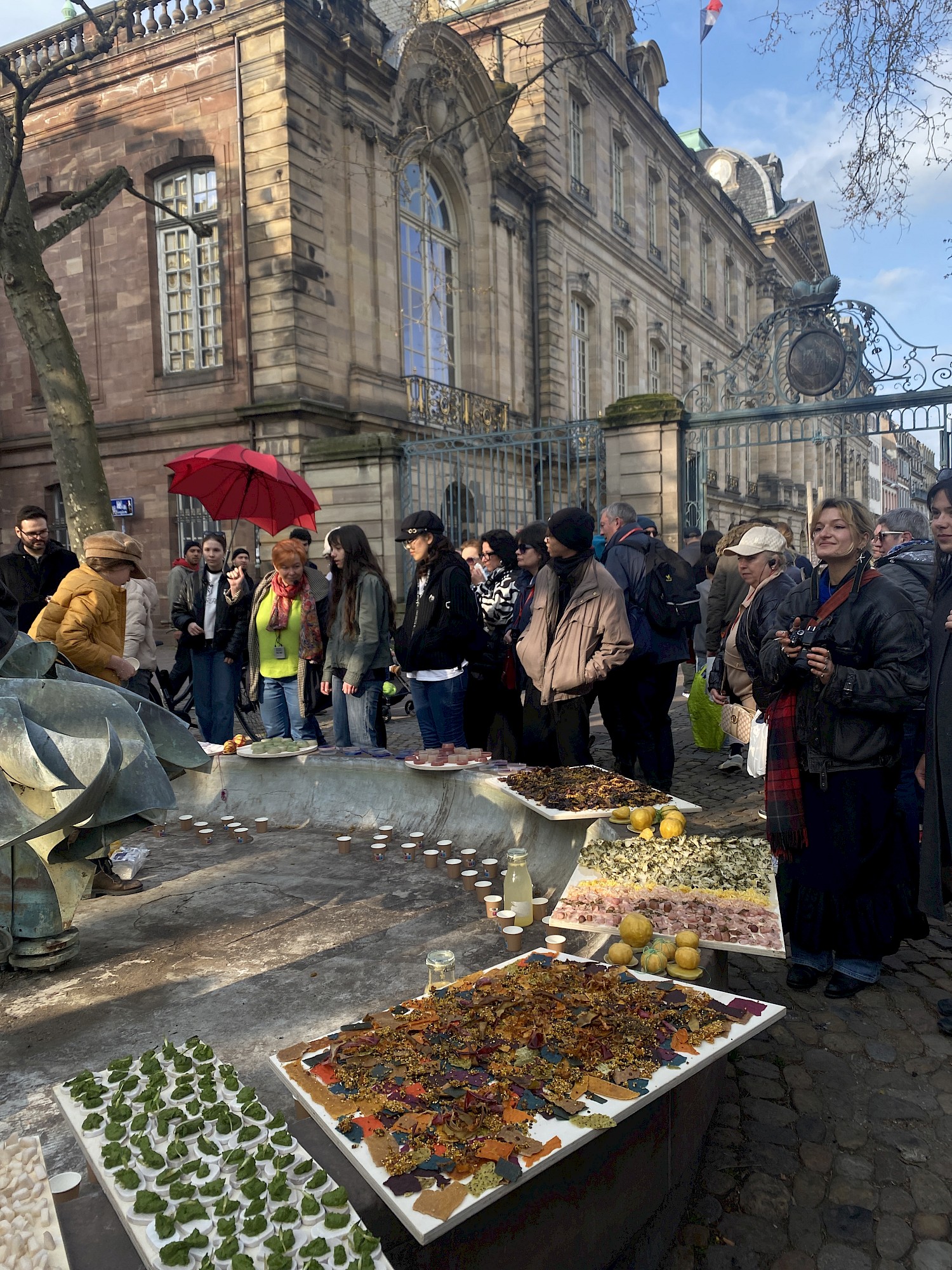 Quel rapport entretenons-nous avec le vivant en ville et notamment avec la terre? Comment s’approprier individuellement ce débat pour agir collectivement et valoriser la terre comme bien commun en ville ? En accompagnement à ce débat, l’artiste culinaire Débora Incorvaia est intervenue pour initier les étudiants·es à la fermentation, à la cuisine végétale et crue. Ses recettes à base de légumes racine inspirées du Japon et d’Amazonie seront proposées lors d’un évènement festif en centre-ville à Strasbourg en mars 2025.